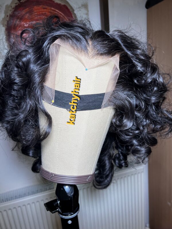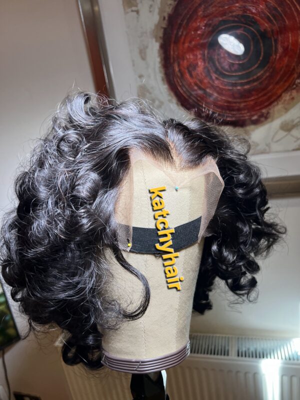 this wig is 250%density virgin 100%human hair 12inches bouncy with 13×6 frontal